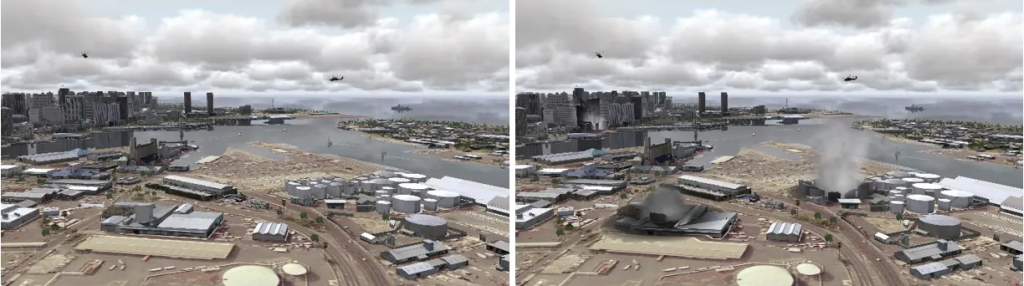 Daniel Peters, Sales Manager of Diamond Visionics, said “This release captures many of the updates we’ve made for specific programs over the last few years and much more. Our work on a new 3D cloud integration, sloped clouds and the ability to damage any object in a scene with our Static Feature Destruction, among many other updates, are very exciting.
